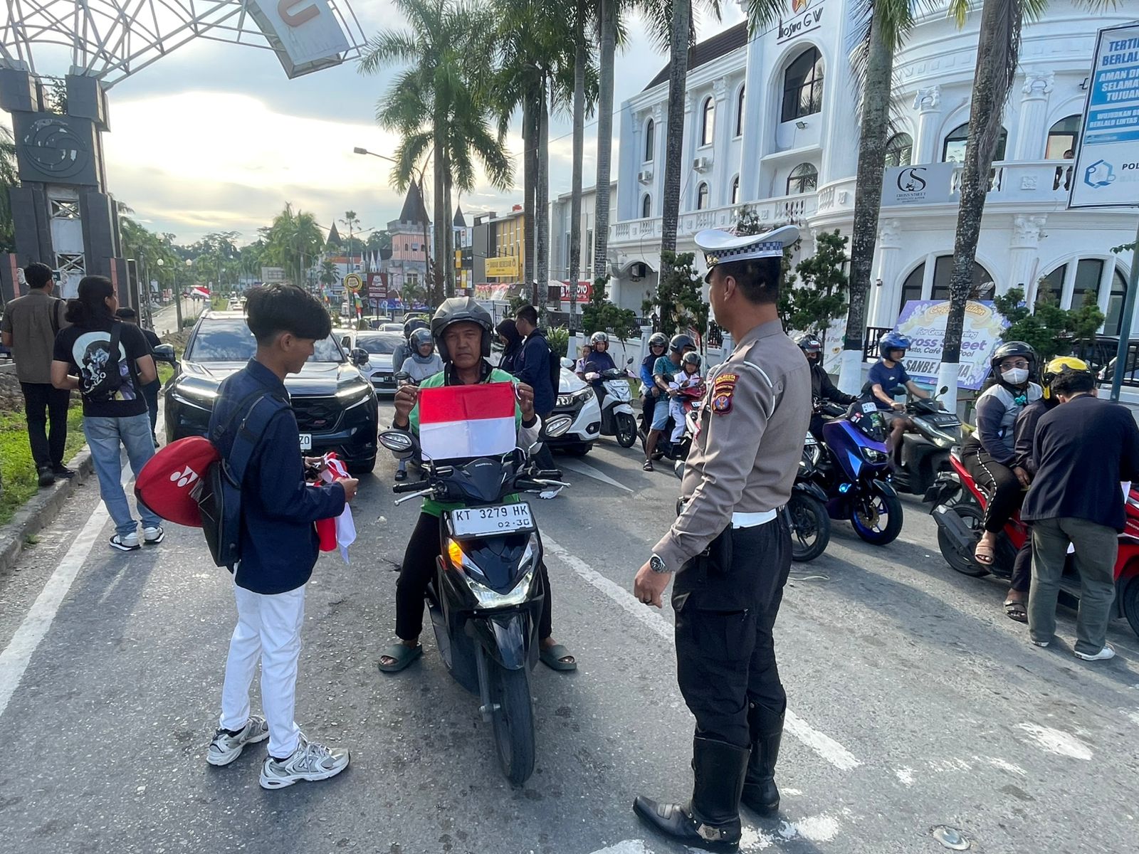 Aksi berlangsung hangat, disambut senyum dan ucapan terima kasih dari para pengendara. Banyak yang langsung memasang bendera di kendaraan, membuat jalanan di sekitar lokasi semakin meriah dengan warna merah putih.