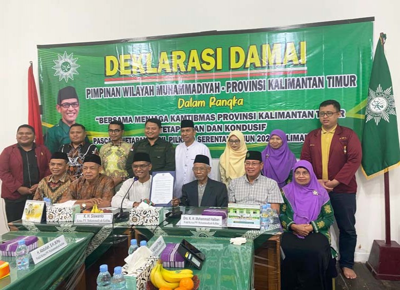 SAMARINDA- Pimpinan Wilayah (PW) Muhammadiyah Kalimantan Timur menggelar deklarasi untuk mendukung Pilkada 2024 yang aman dan damai, pasca penetapan hasil Pilkada Serentak di Kaltim 2024, baik Pilkada Gubernur, Walikota dan Bupati.
